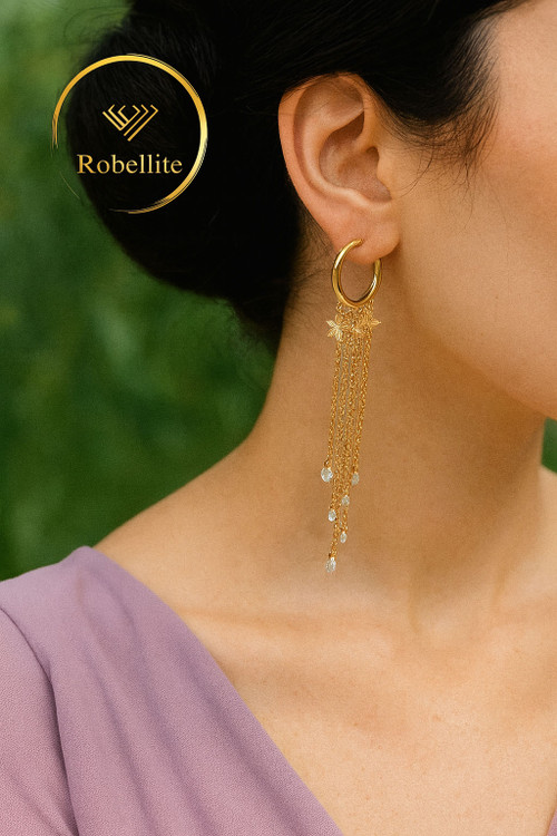 گوشواره ژوپینگ آویز ستاره و نگین