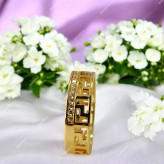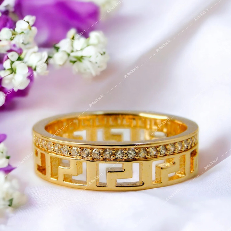 رینگ طلایی با طراحی ورساچ از برند ژوپینگ می باشد. این انگشتر با جنس آلیاژ مس با روکش طلای 18 عیار و فاقد نیکل بودن ضد حساسیت است. کاملا شبیه به طلا است و رنگ آن به واسطه روکش طلا 18 عیار ، طلایی است. تمامی نگین های بکار رفته مخراج کاری شده اند و ریزش ندارند.