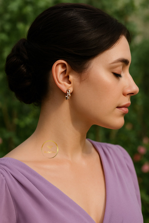 گوشواره از برند ژوپینگ می باشد. این گوشواره کاملا مطابق با نمونه طلا با جنس آلیاژ مس با روکش طلای 18 عیار و فاقد نیکل بودن ضد حساسیت است. و رنگ آن به واسطه مس با روکش طلا 18 عیار ، طلایی است. تمامی نگین ها مخراج کاری شده و ریزش ندارند